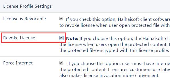 Please make sure that you choose License is revocable option. If your users can always be online, please select Force Internet option.