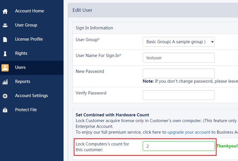 If you don't integrate with your website and use the standard DRM-X Admin. Don't set the Rights price to 0, it prevents users obtain license for an unlimited of times. We recommend that you set the number of hardware bindings for the end user. When hardware binding is enabled, the user can only obtain the license for the specified number of devices.