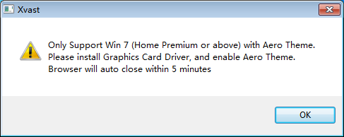 9. Error Message: "Only support Win 7 (Home premium or above) with Aero Theme."