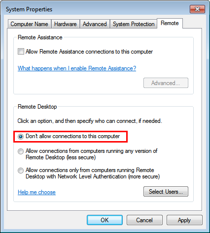 Please disable the remote desktop of your system.