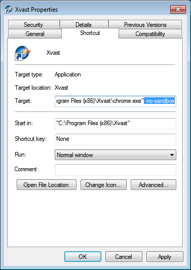 - Right click on the desktop Xvast shortcut - Properties